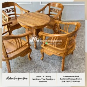 Set Kursi Teras Jati Minimalis 4 Kursi & 1 Meja kayu jati