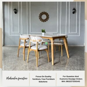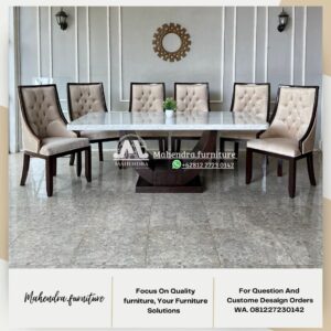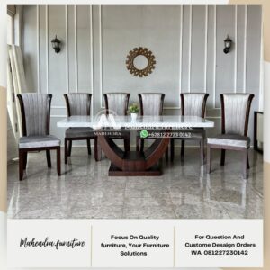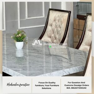 Set Meja Makan Marmer Putih 6 Kursi Jati Minimalis Mewah