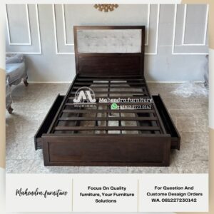 Tempat Tidur Kayu Jati Laci Minimalis Ranjang Ukuran Single Jepara