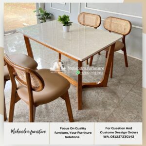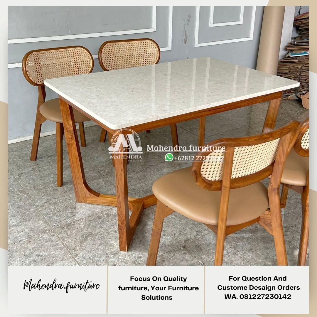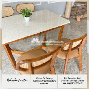 Akhirnya, kombinasi marmer dan kayu jati menjadikan set meja makan ini sebagai investasi furniture berkualitas. Sebagai hasilnya, dengan perawatan yang baik, furniture ini dapat bertahan hingga generasi berikutnya.