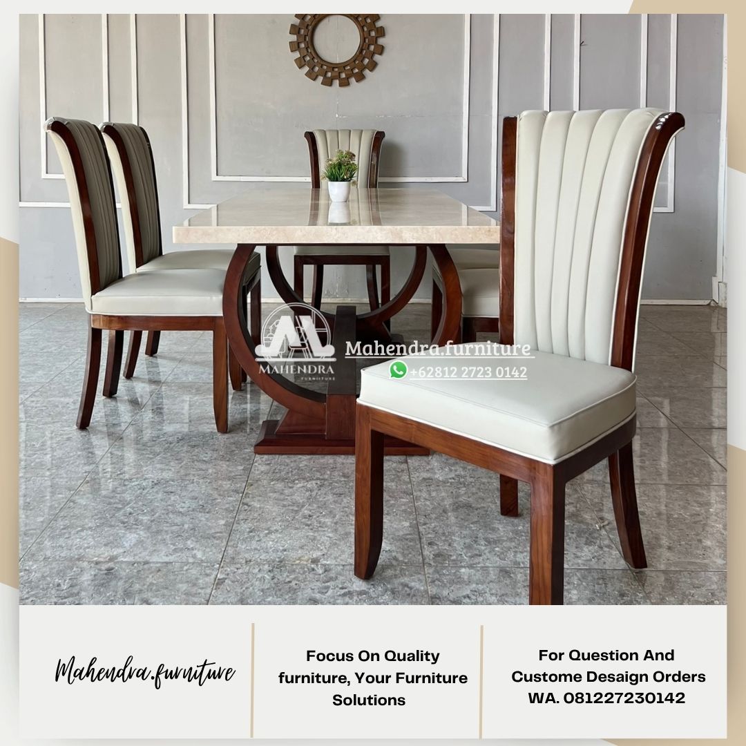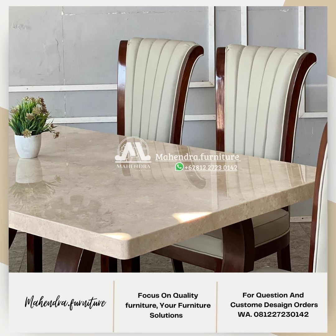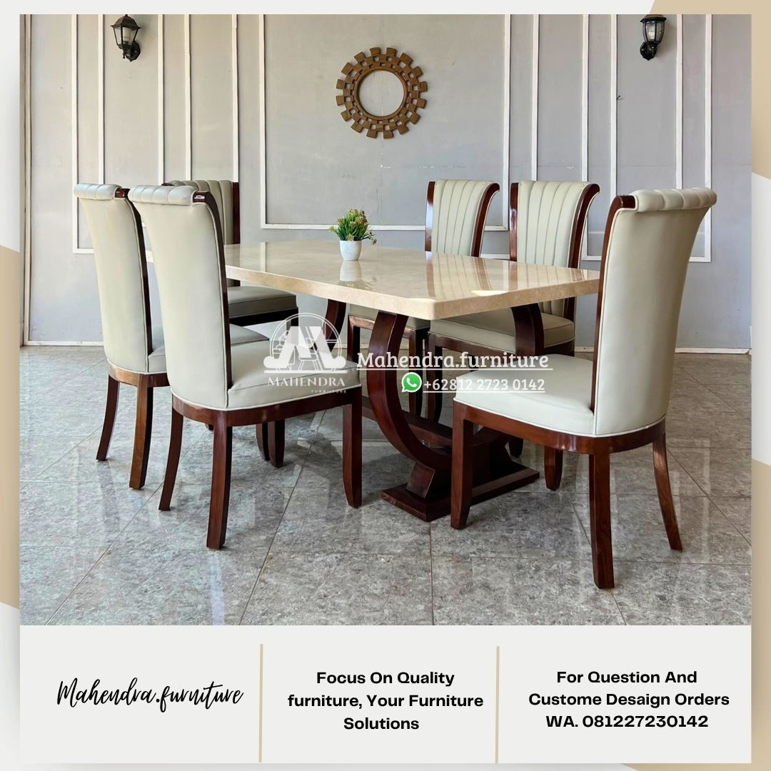 Meja Makan Marmer 6 Kursi Jok Elegant Furniture Jepara
