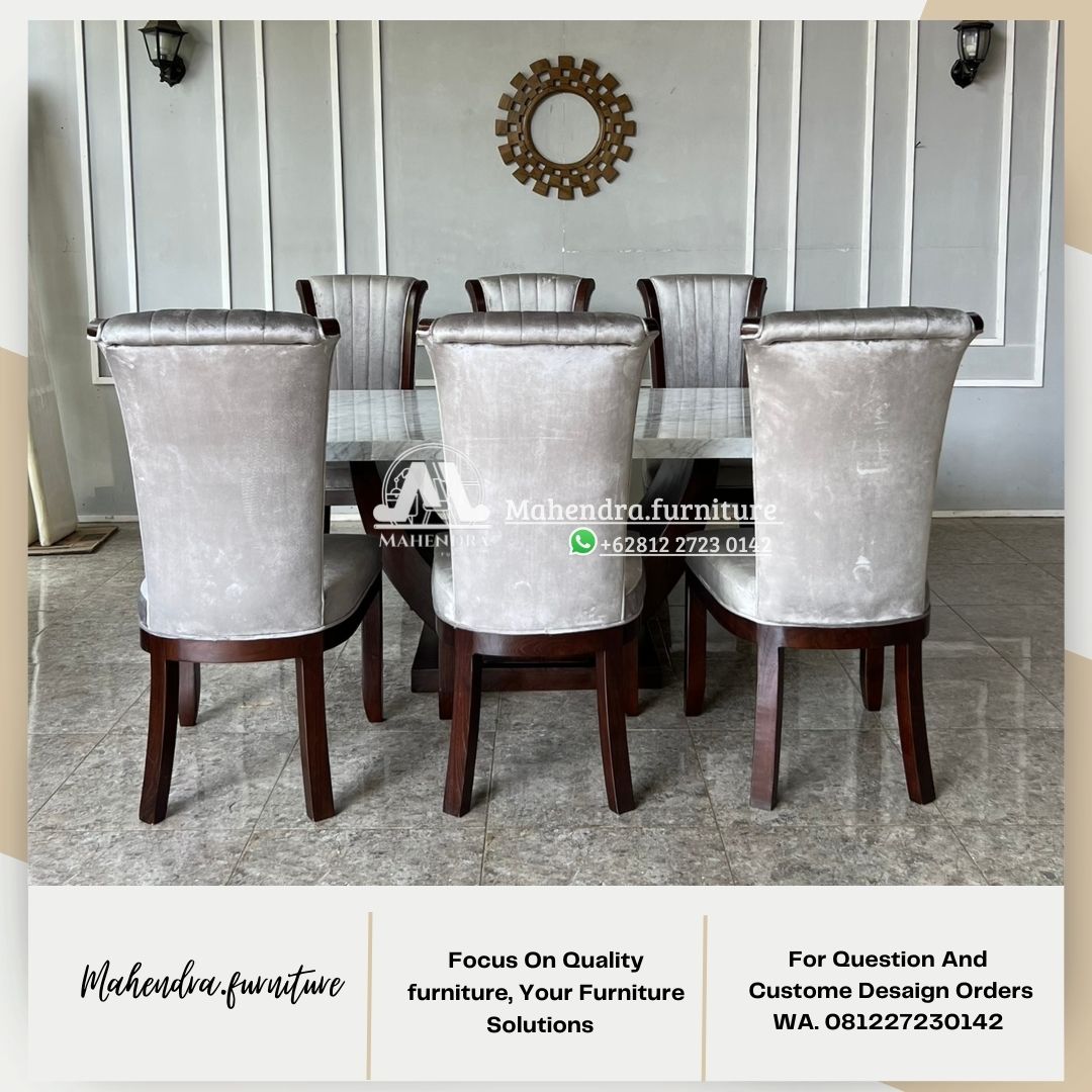 Jika Anda ingin ruang makan keluarga terlihat lebih mewah dan nyaman, set ini bisa menjadi pilihan yang tepat.