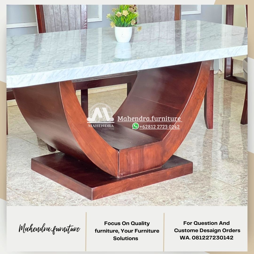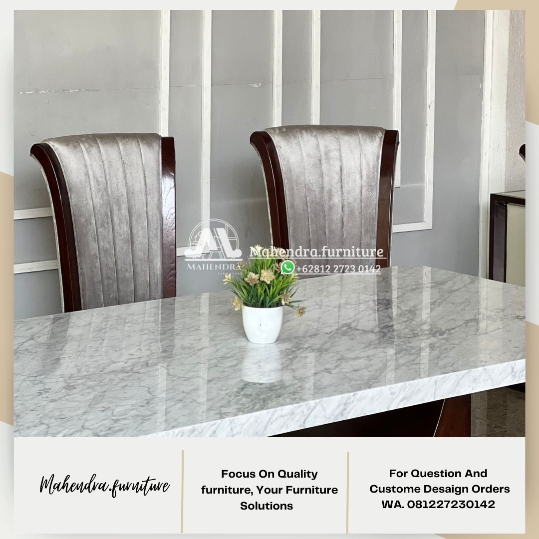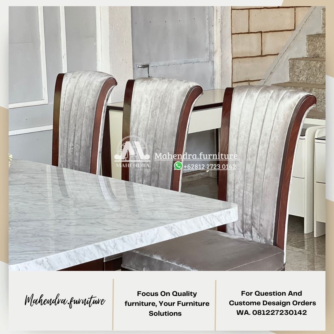 Set Meja Makan Marmer Putih 6 Kursi Jati Minimalis Mewah