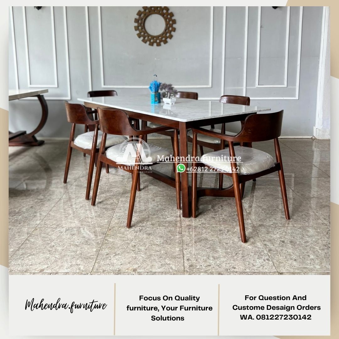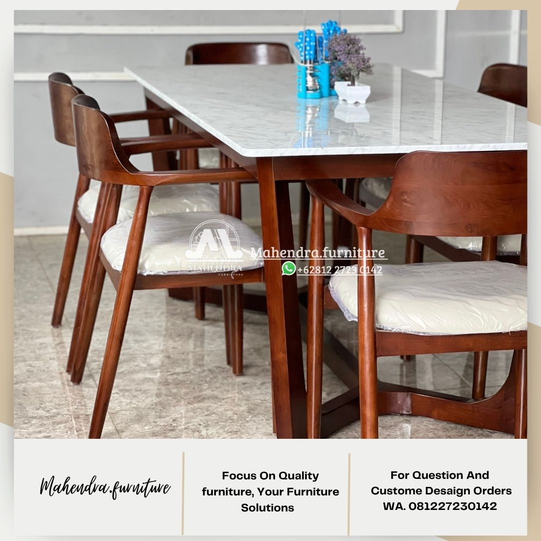 Set Meja Makan Marmer Putih 6 Kursi Kayu Jati Minimalis Modern