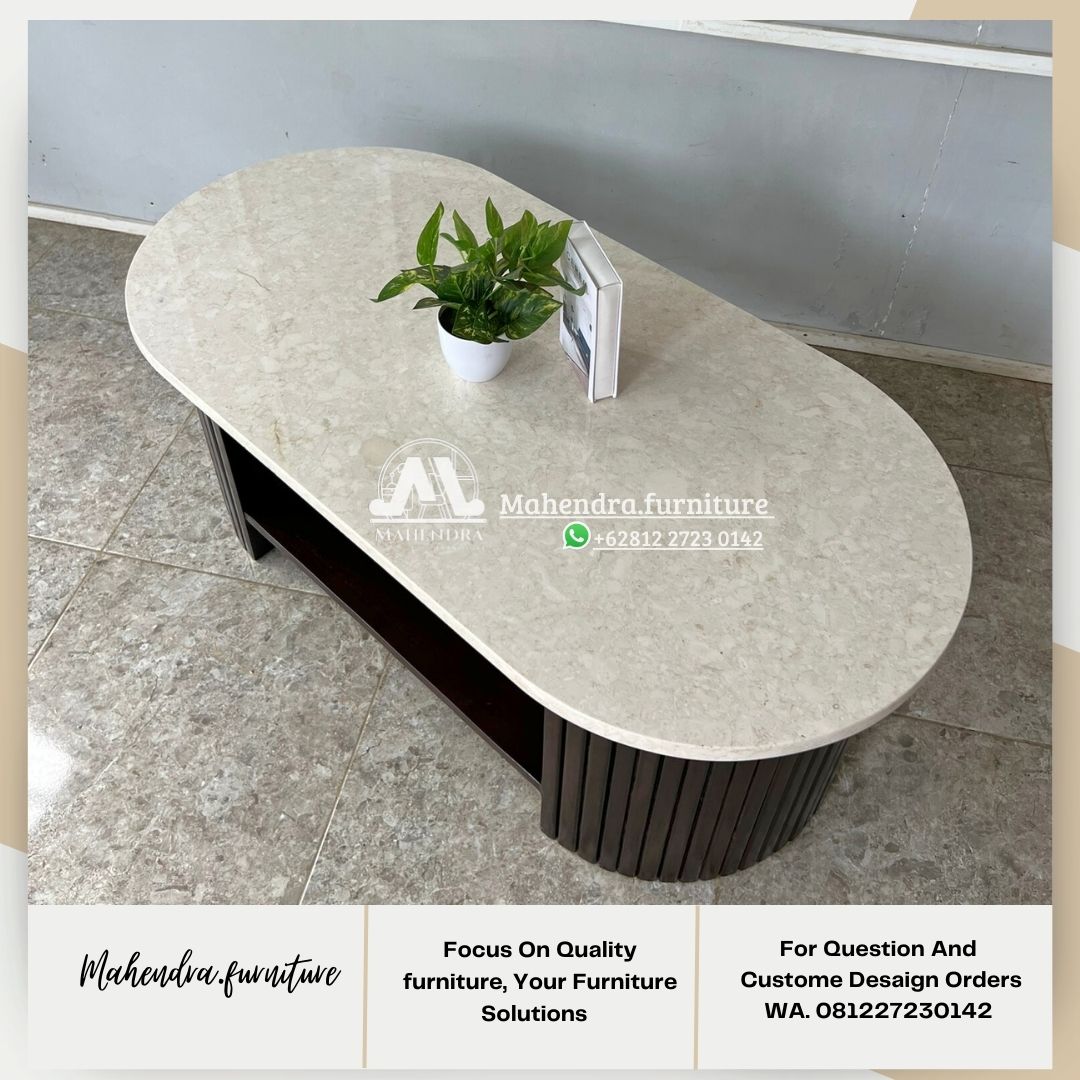 Jangan tunda lagi! Waktunya upgrade ruang tamu dengan meja tamu marmer oval yang elegan dan fungsional dari Mahendra Furniture.